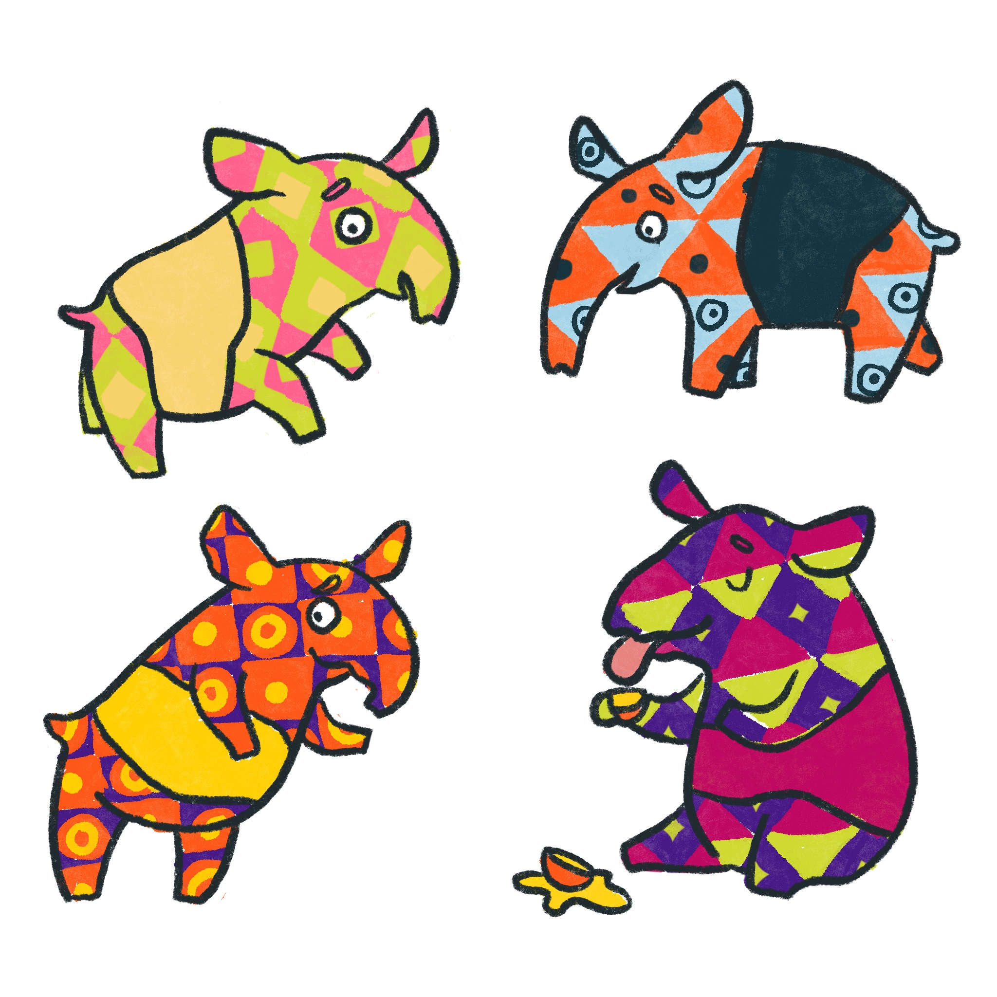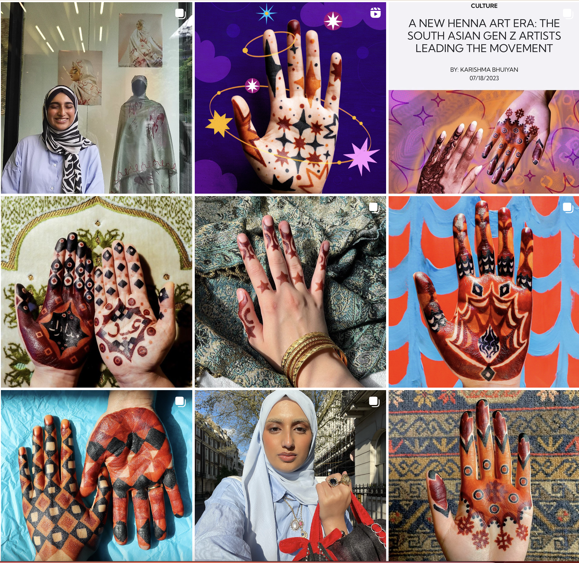 I then referred to Heegyum Kim’s step by step book How to Draw 62 Animals and Make Them Cute to help me warm up to drawing other animals in a looser, simplified way. I settled on a tapir and then brought it into procreate to play with colour and pattern. I’ve had a screenshot of this mehndi (bottom left on the blues background) on my phone for agggges and keep trying to figure out how to use this print. So I went onto @ruqaiyyahboo instagram for more inspo and fell further in love with the way she builds henna designs.